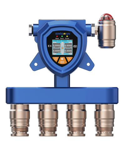 SGA-504系列氨氣四合一氣體檢測儀是深國安(股票代碼:681434)運用十多年氣體檢測儀生產(chǎn)經(jīng)驗,針對多組合氣體檢測需求所研發(fā)生產(chǎn)的一款多合一氣體檢測儀表;產(chǎn)品可根據(jù)客戶需要任意搭配1-4種氣體組合,氣體種類不限,檢測量程不限,采樣方式不限;實時在線監(jiān)測,超標(biāo)自動聲光報警,并可通過內(nèi)置繼電器自動聯(lián)動設(shè)備,排除險情;并支持選配溫濕度檢測功能;產(chǎn)品采用深國安典型的家族式“盾形”外觀設(shè)計, GB50493-2009《石油化工可燃?xì)怏w和有毒氣體檢測報警設(shè)計規(guī)范》研發(fā)生產(chǎn),并取得相關(guān)的CPA型式批準(zhǔn)證書、國家防爆證和第三方計量證書和專利證書;
