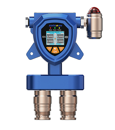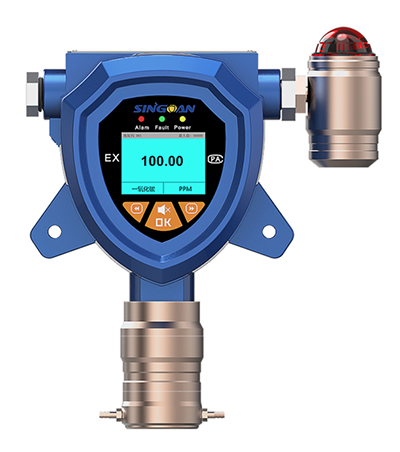 固定式氣體檢測儀可以安裝在特定的檢測點上對特定的氣體泄漏進行檢測。不過固定式氣體檢測儀一般為兩體式,有傳感器和變送組成的檢測頭為一體安裝在檢測現場,有電路、電源和顯示報警裝置組成的二次儀表為一體安裝在安全場所,便于監視。它的檢測原理同前節所述,只是在工藝和技術上更適合于固定檢測所要求的連續、長時間穩定等特點。它們同樣要根據現場氣體的種類和濃度加以選擇,同時還要注意將它們安裝在特定氣體最可能泄漏的部位,比如要根據氣體的比重選擇傳感器安裝的最有效的高度等等。