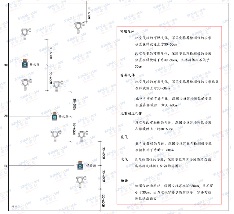 靠墻面安裝(離氣體泄漏源最近的地方)