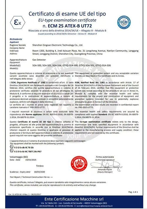 ATEX-B認證,作為歐盟針對爆炸性環境使用的設備和保護系統的較高級別認證之一,其嚴苛的測試標準和復雜的審核流程,無疑是對產品設計與制造能力的極大考驗。深國安固定式氣體報警器能夠順利通過認證,得益于我們團隊在技術研發、材料選擇以及生產工藝上的不斷突破與創新。我們始終將安全放在首位,致力于為客戶提供最可靠、最穩定的氣體檢測解決方案。