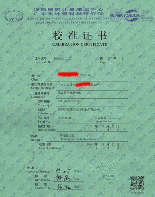 深國安電子制造的SGA-501系列固定式SF6六氟化硫氣體檢測儀,出廠帶第三方專業計量院校準報告證書,其校驗報告結果:儀器精確度:3%FS ,重復性:0.3%FS,線性誤差:1% FS,響應時間:19S;報警誤差:0.0%;不過在SF6六氟化硫氣體檢測儀采購上,如需要出示儀器校準報告,用戶也可自行送檢任何計量院進行校驗,校準標定等檢測,據說一般送檢費用是在一千左右,需要客戶自行承擔。